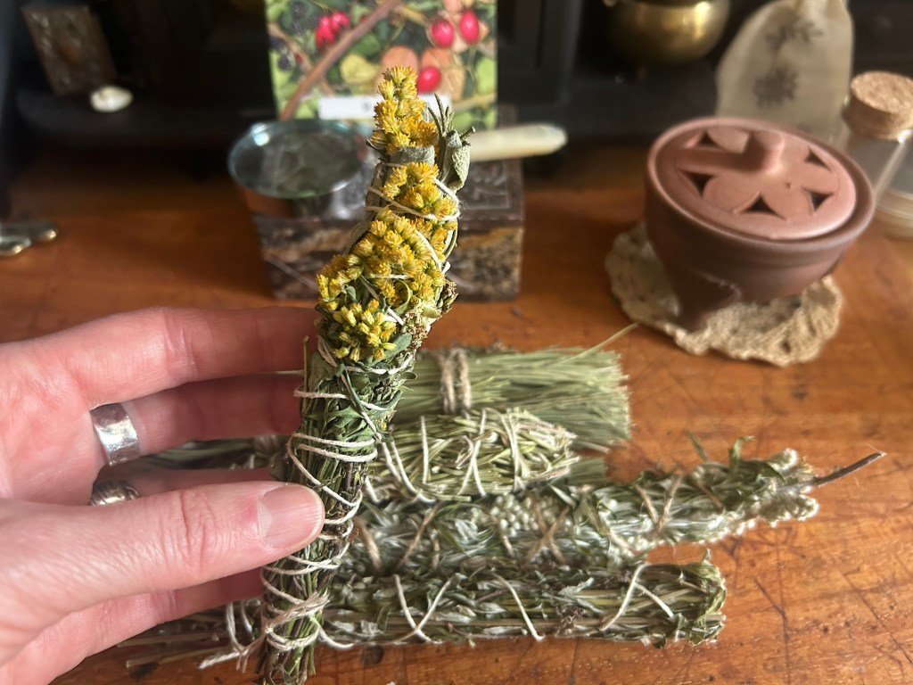 Note: Always be very cautious with mugwort (even inhaling smoke) if you pregnant or trying to conceive. Always do your research about the effects of herbs on humans and animals. Always be sure about identification of plants before burning or ingesting. Most herbs are very potent and some are toxic. Always burn in well ventilated spaces.