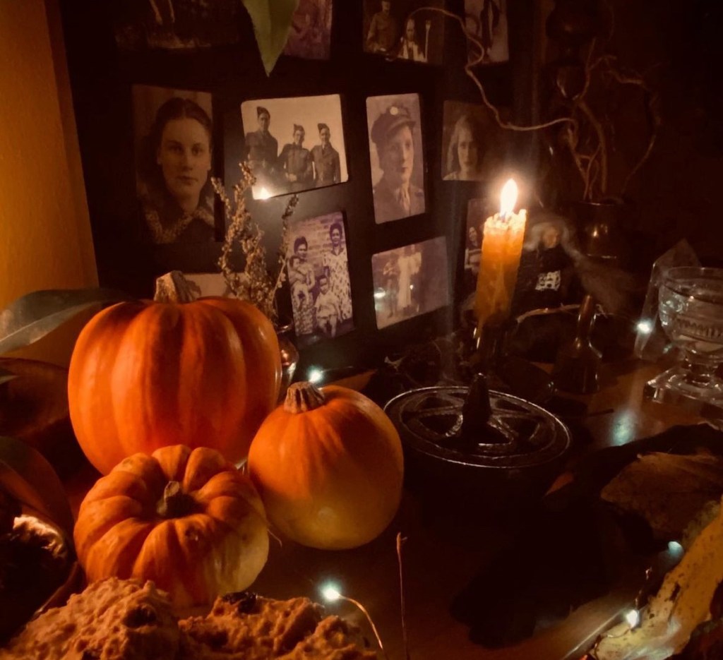 For Samhain you may like to create an ancestor altar with photographs of your relatives/ancestors or items from nature to represent the season. You might like to go for a walk in your local park or sacred place and honour all those who have gone before in that place, and make an offering of bird seed or dried herbs. You could pick up a stone or leaves to dry to add to your altar and connect to your local land.