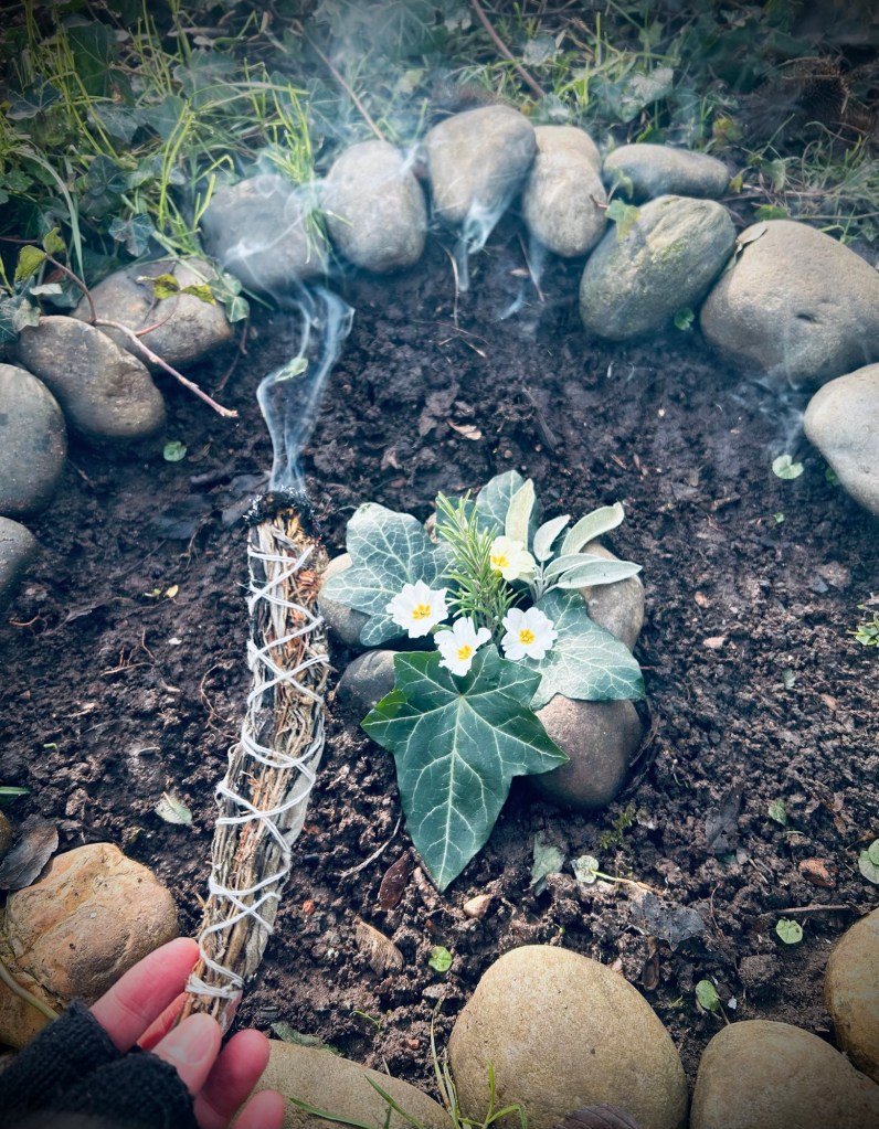 Next, bring to mind your intentions for the year (again right them down if you’d like to,) and now circle the burning herbs in a clockwise direction for that intention setting, as if drawing intentions to you.