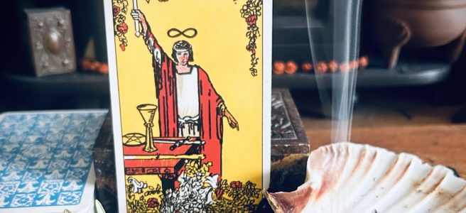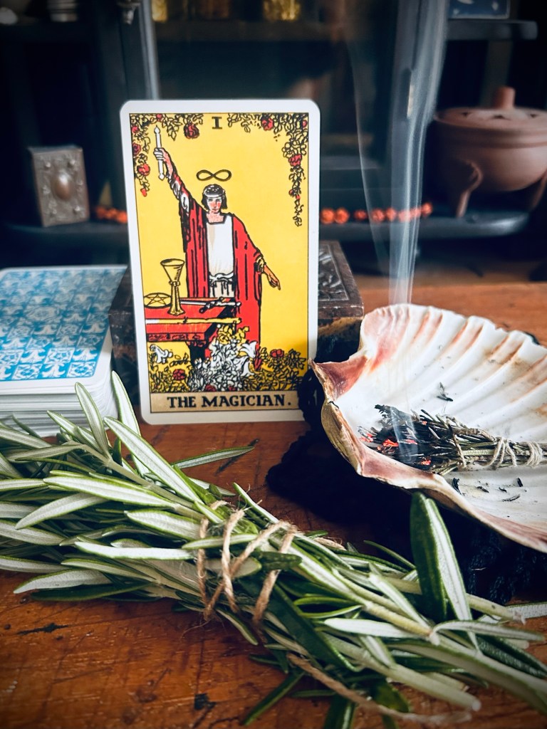 Over the years I’ve been deepening my relationship with the plants around me, as well as with tarot cards and recently when I was meditating on my marvellous friend rosemary, to my surprise, I saw in my mind’s eye, rosemary as a potent herbal mirror for the The Magician Tarot card.