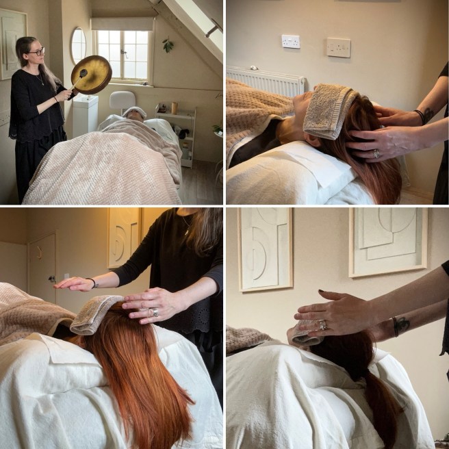 Reiki Head Massage – £46 +. Price and length of session can be tailored to clients preferences and can depend on venue. £46 – without oil and reiki on head, shoulders & feet. £48 with oil. This is an ‘ASMR’- style Reiki Massage for deep relaxation and can be delivered to feel completely pampered and energetically cleansed. Combining Reiki with traditional Indian head massage which includes hair brushing, hair, head and scalp massage and various light to medium massage techniques to head, neck, face (optional), shoulders, arms and mid-back, and can be delivered fully clothed without oil, or with oil applied to upper-back and shoulders (with optional oil treatment for hair and face,) delivered with the client covered in a towelling wrap, which is provided. This session is delivered partially seated to begin with, moving to lying down on a massage couch. It can also be delivered lying down or seated for the entirety of preferred.